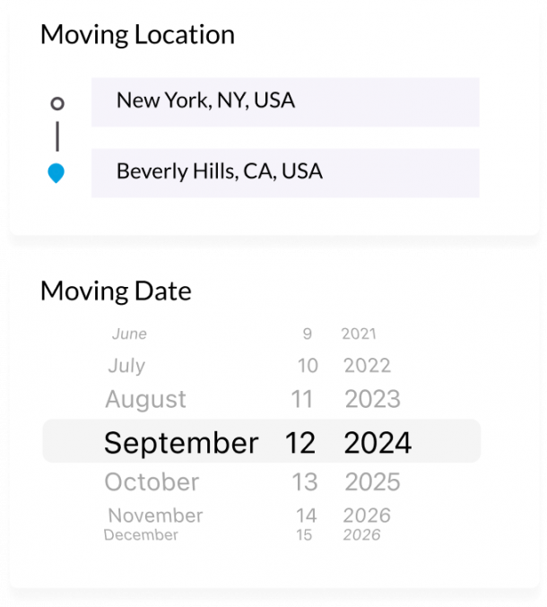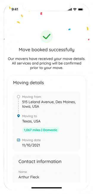 Enter your addresses and important details like floors or elevator access. We’ll send this directly to your selected mover, who will contact you with next steps.