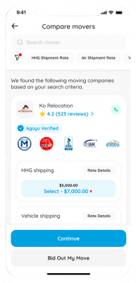 Agoyu instantly provides accurate, real-time quotes from top movers based on your items, location, and destination. Easily compare prices and choose your best option.