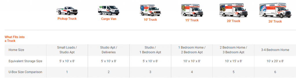 Uhaul Trucks Sizes